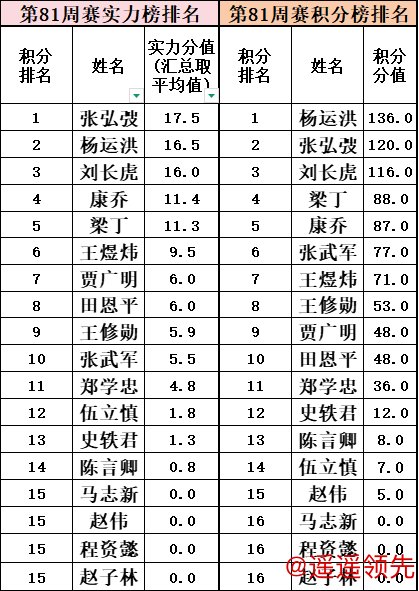 11 月 15 日,乐弈场第 81 场周赛在棋牌大师会馆如期举行。值此“商界棋王”活动即将于明日亮相乐弈场,本次赛事也以满载活力的对弈为后续活动蓄势添彩。围棋爱好者再次齐聚一堂,于方寸棋盘间展开智慧较量。比赛过程跌宕紧凑,每一局都暗藏巧思,每一步都牵动着观者心绪,充分呈现了围棋竞技的深度与魅力。经过对决,张弘弢与杨运洪凭借稳健的布局、敏锐的判断以及沉着冷静的心态,分别登上“实力榜”与“积分榜”榜首。