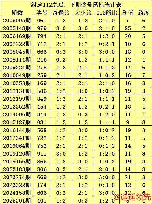 二、组选112分析:排列三历史上已开出25次组选号码112了,其奖号和下期开出奖号统计如下: