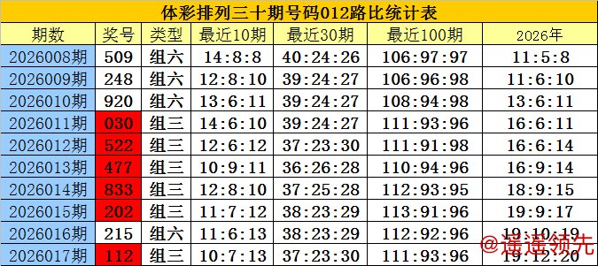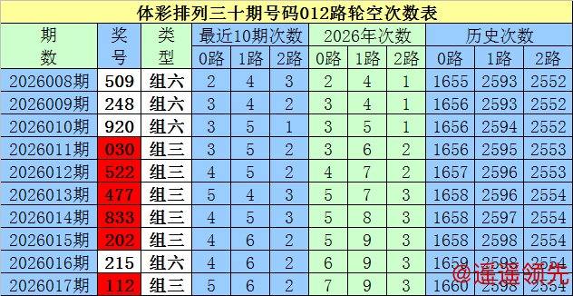 开奖回顾:排列三第2026017期奖号为:112betway必威,号码012路比为0:2:1。