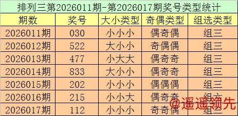 排列三第2026017期回顾:奖号112,奇偶比2:1,大小比0:3,和值4,类型:组三。