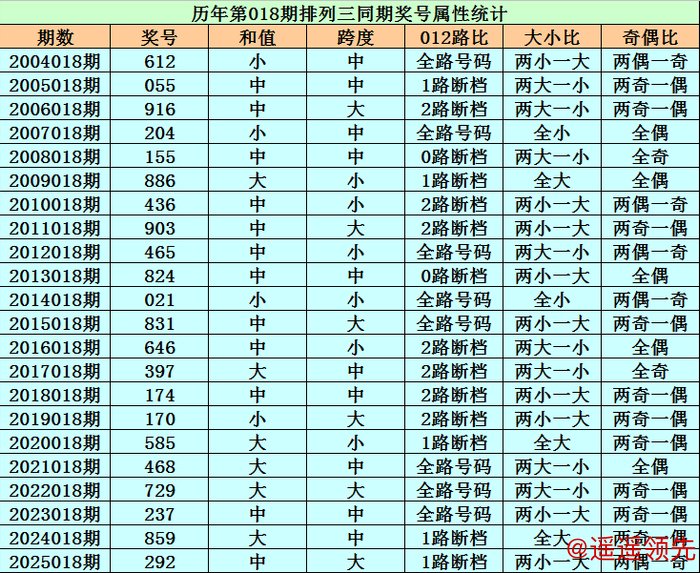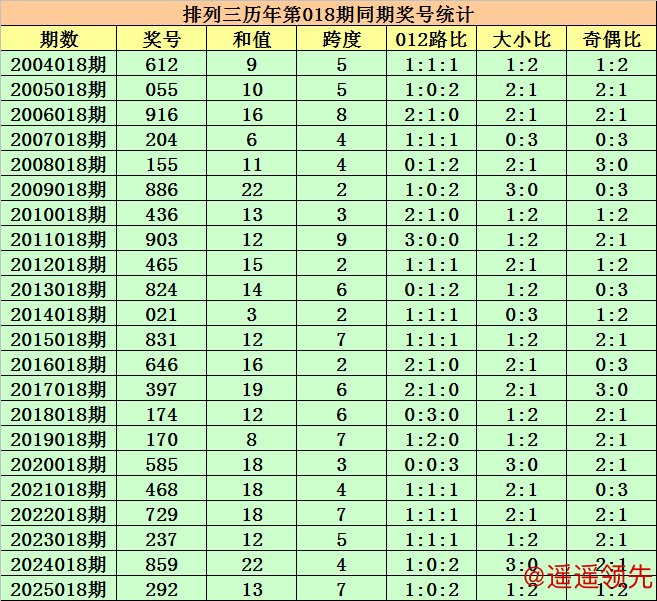 历史上第2026018期排列三已开出22期奖号了,历年同期奖号分别为:612、055、916、204、155、886、436、903、465、824、021、831、646、397、174、170、585、468、729、237、859、292,详细统计见下表: